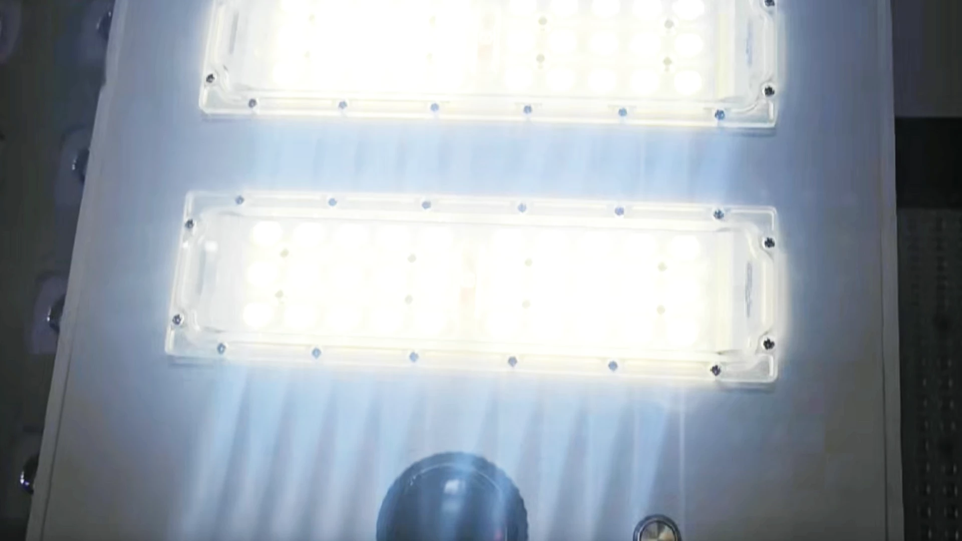 The video clearly shows how the solar panel, LED light source, controller, and lithium battery are structurally integrated into a single housing, reducing external wiring and potential failure points.