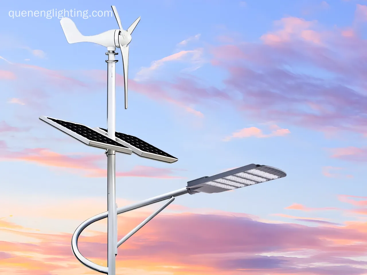 Queneng Lufeng Wind Energy LED Outdoor Solar Street Lights offer high-performance, eco-friendly illumination. These energy-efficient LED street lights harness solar power and wind energy for sustainable, cost-effective outdoor lighting solutions.